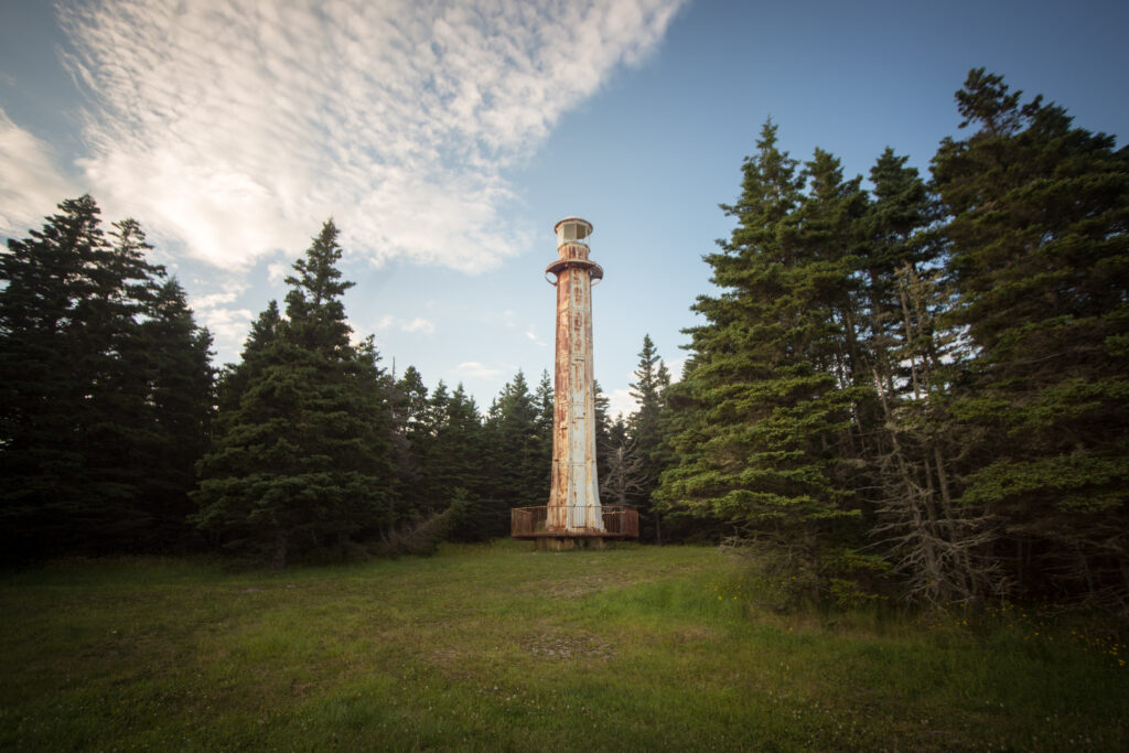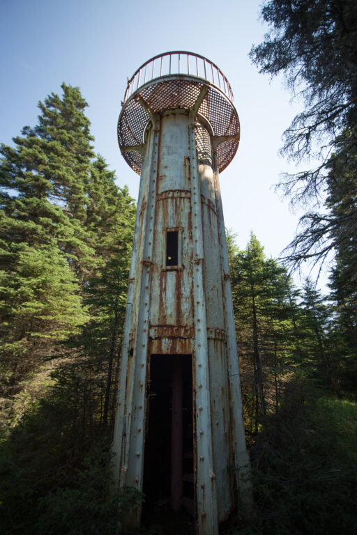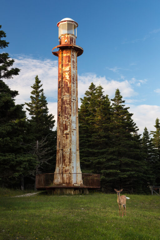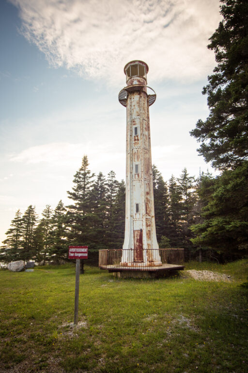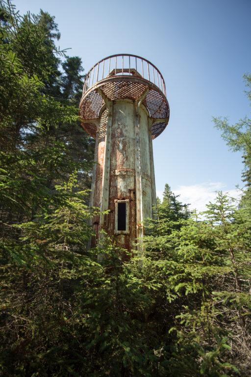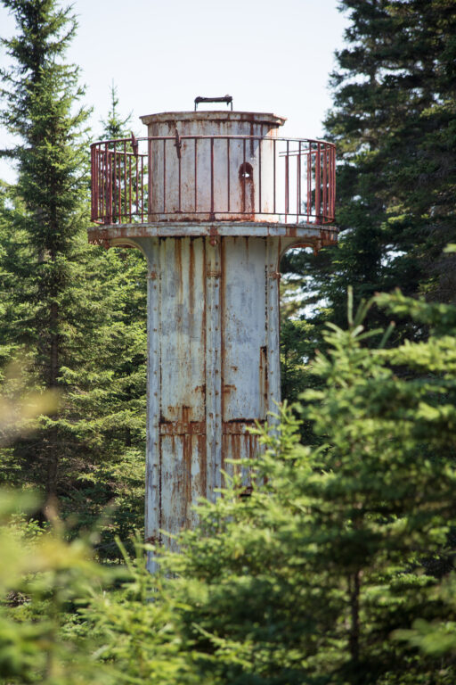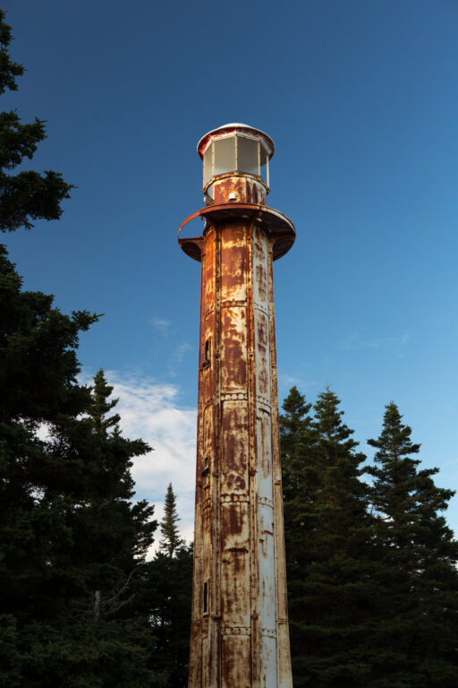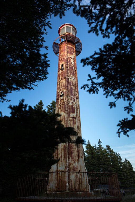 Ces feux d’alignement sont des tours à lentilles fixes, situées près du village de Port-Menier sur l’île d’Anticosti.
