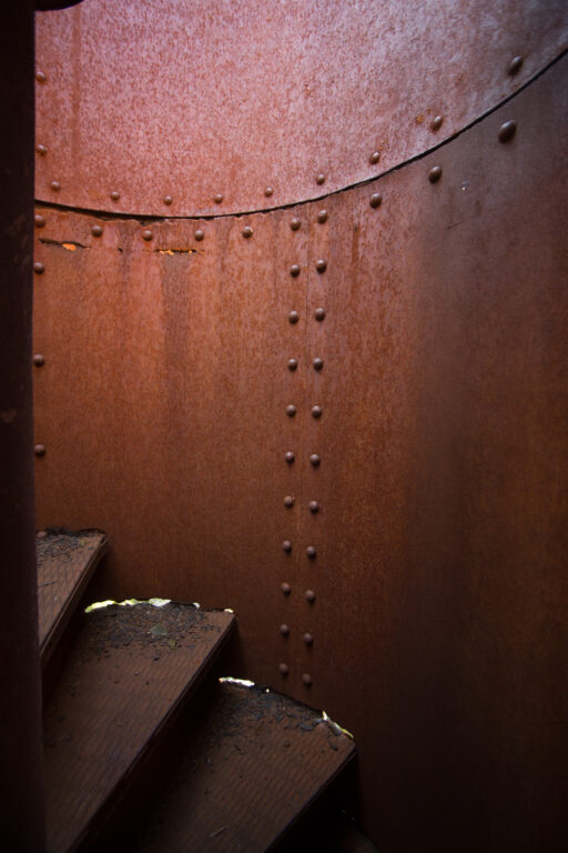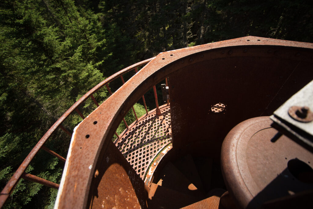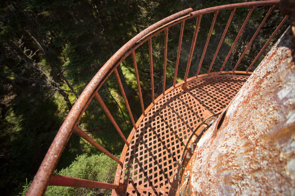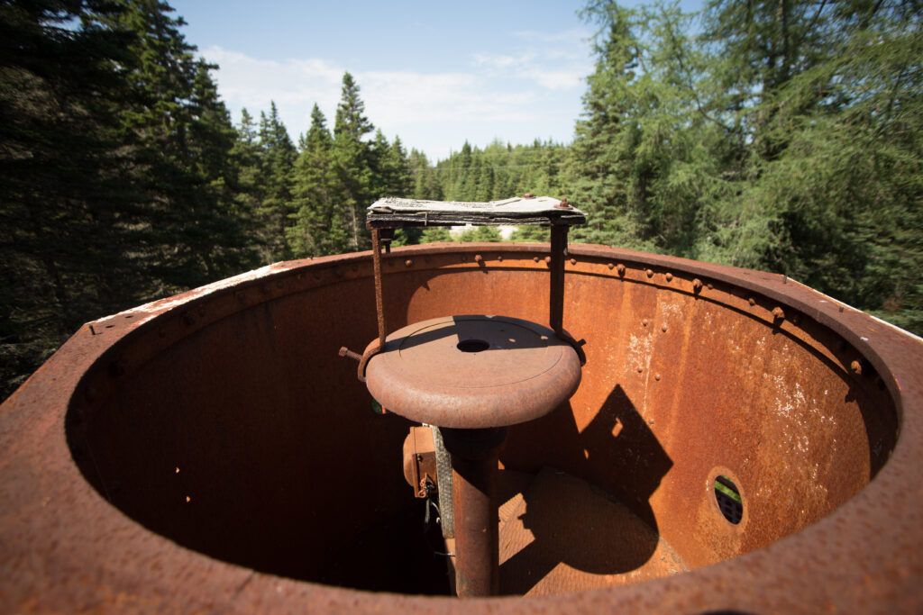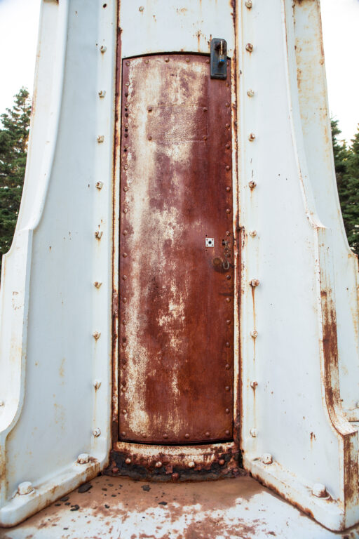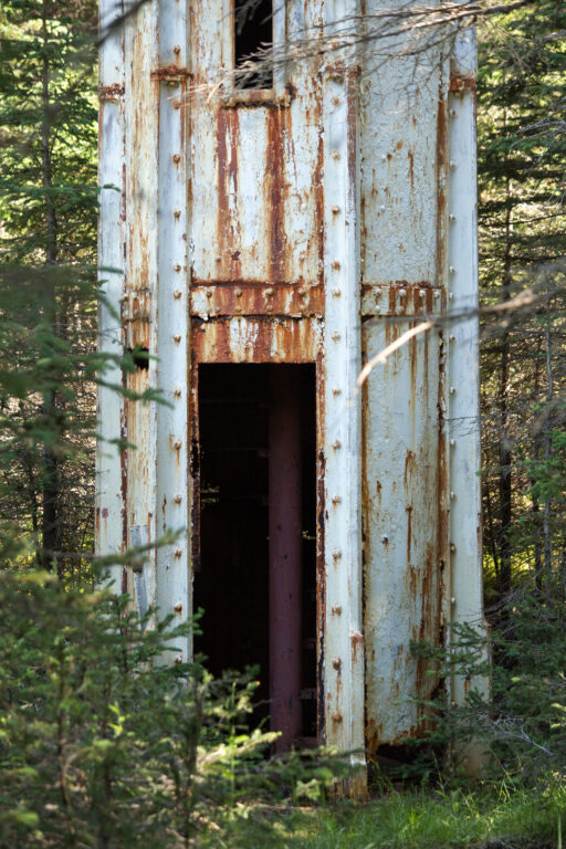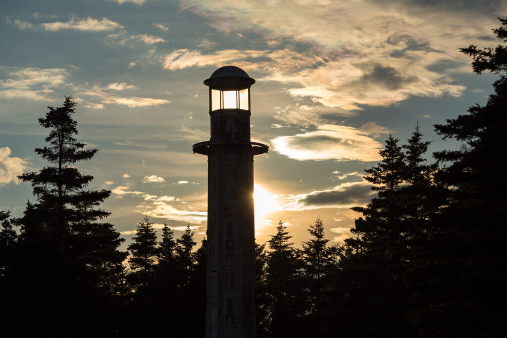 Ces feux d’alignement sont des tours à lentilles fixes, situées près du village de Port-Menier sur l’île d’Anticosti.