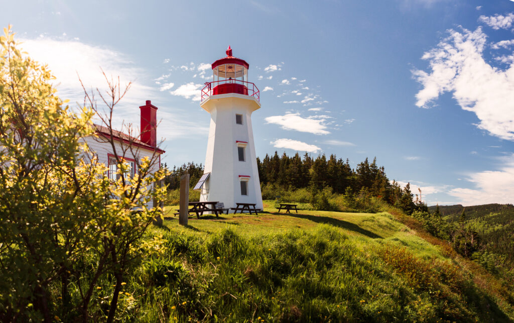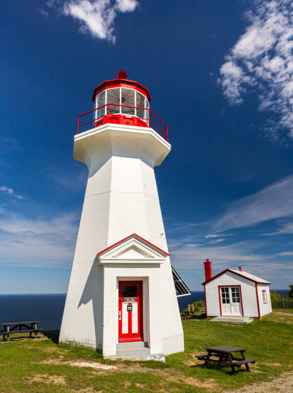 Le phare de Cap-Gaspé, construit en 1950, est situé à l’extrémité de la péninsule de Forillon et mesure 9 mètres de hauteur.