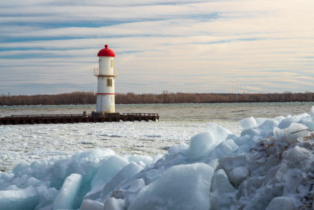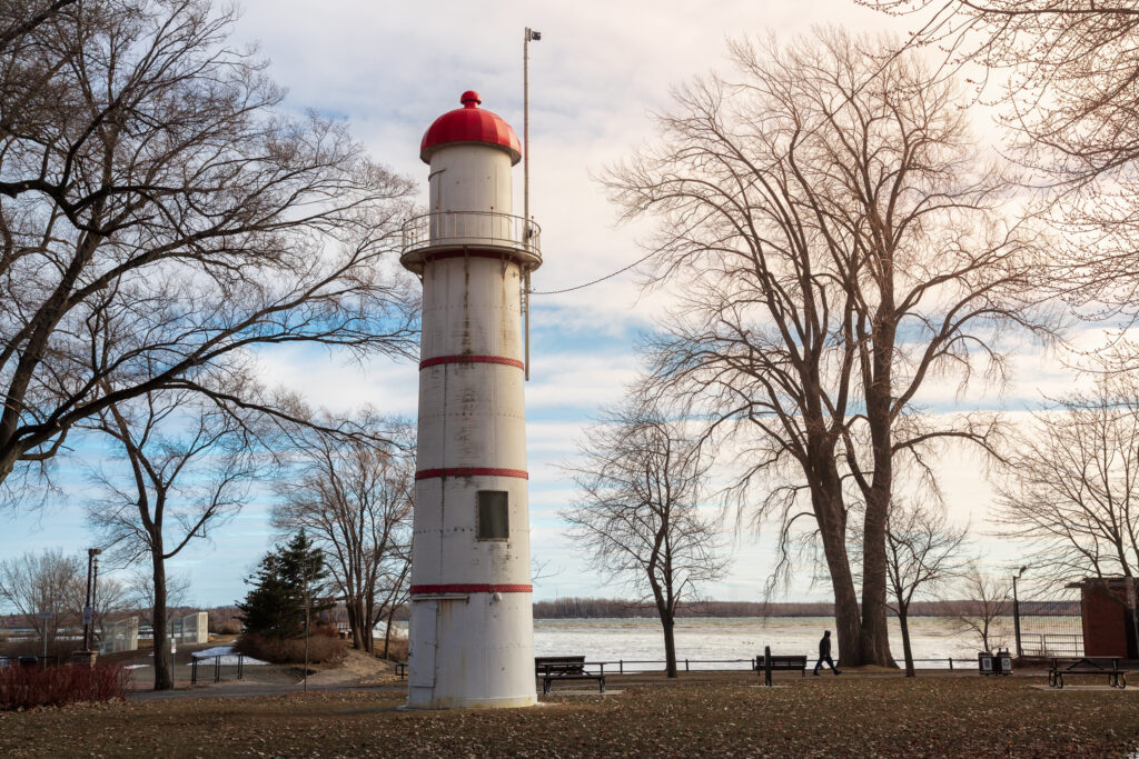 Le phare de Lachine, situé à l’entrée supérieure du canal de Lachine, a été construit en 1900 pour guider les navires entre le canal et le lac Saint-Louis. La tour avant, en acier conique, mesure 9 mètres, tandis que la tour arrière, plus haute, s’élève à 14,6 mètres. Ces phares historiques, aujourd’hui actifs, sont des témoins de l’histoire maritime et industrielle de Montréal.