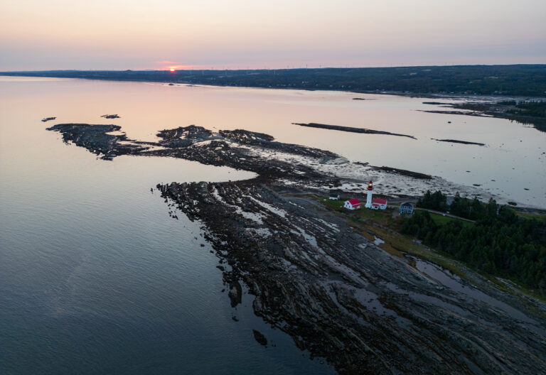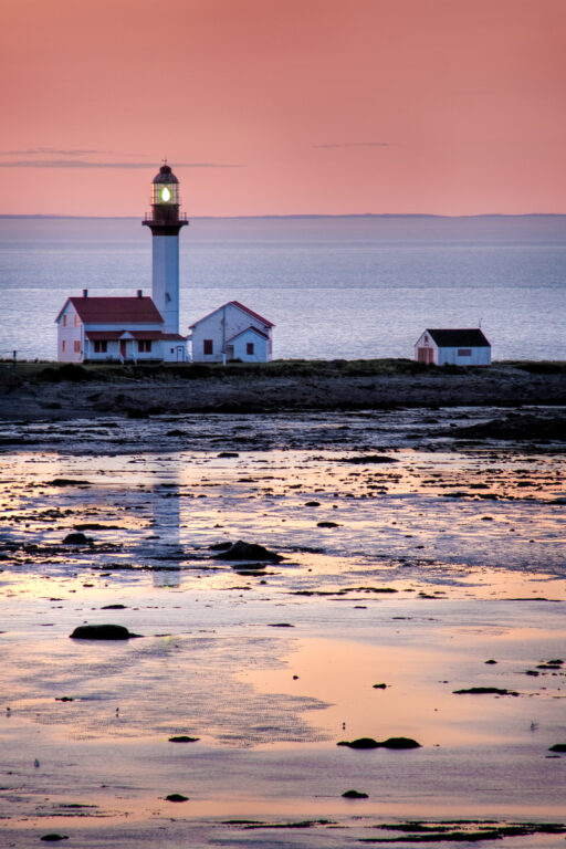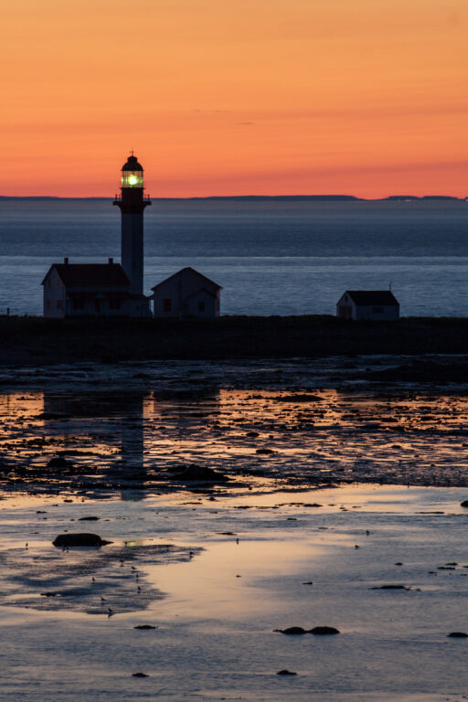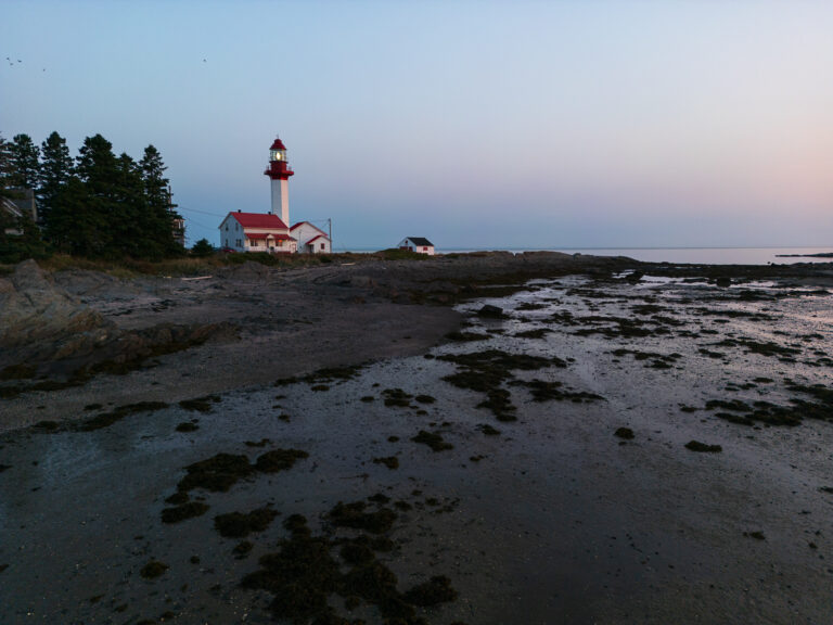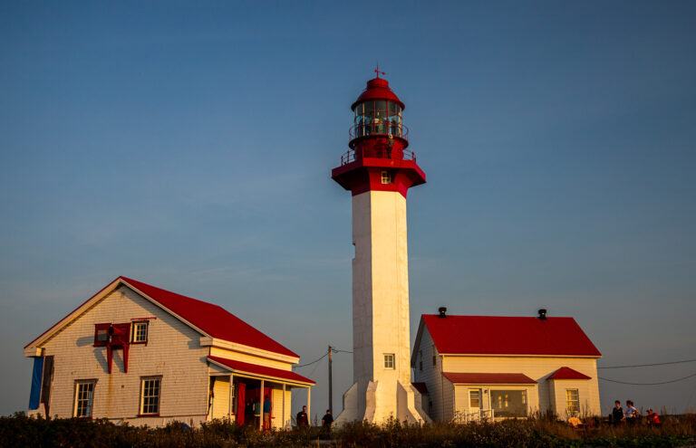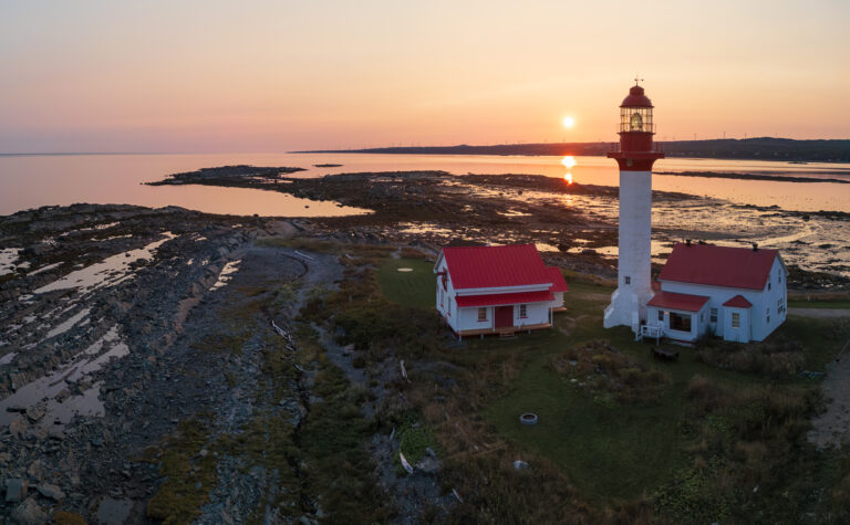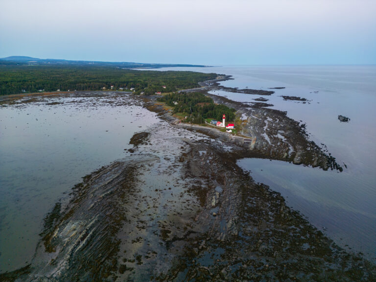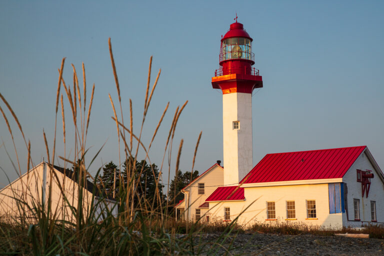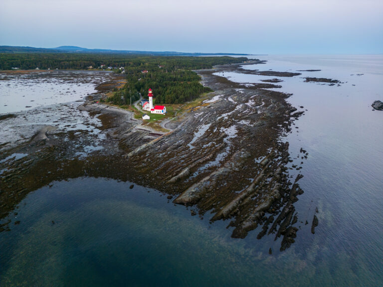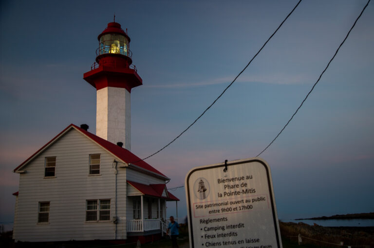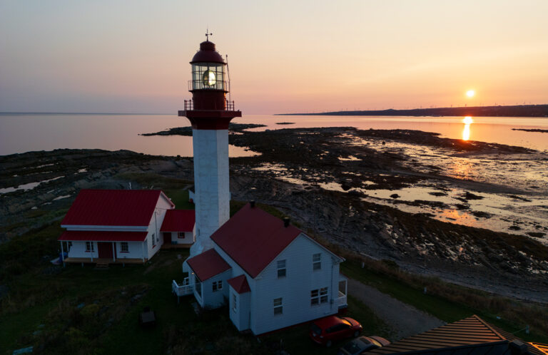Le phare de Pointe-Mitis, construit en 1909 à Métis-sur-Mer, est une tour en béton armé de 25 mètres, remplaçant une structure en bois de 1873. Ce phare, témoin de la Deuxième Guerre mondiale avec l’observation d’un sous-marin allemand en 1942, a vu sa lumière restaurée grâce à la mobilisation de la communauté locale.